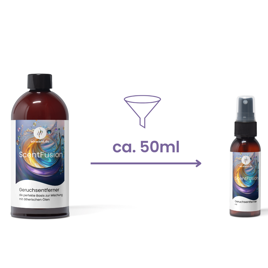 Füllen Sie ca. 50 ml des ScentFusion Geruchsentferner mithilfe des Trichters in ein leeres Sprühfläschchen.